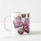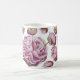 Colourful watercolor pink camellia flowers and buds rose garden pattern on a white background.