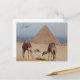 Two camels grazing with a pyramid in the background. Giza, Eygpt.