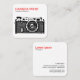 A modern square business card with a high contrast Russian camera motif. Suitable for a variety of businesses. Ready to be customised. The company name is on the front with name and contact details on the reverse side.