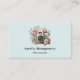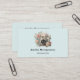 Business cards with a vintage styled camera decorated with flowers. Pastel colors of pink, cream and green.