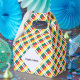 A tiled version of the Cameroonian Flag with the word CAMEROON below in the colours of the flag. A space for your name can be doing within the fractal space of white, squiggly squares, so you can customise a gift or personalise your party theme. Makes this gable favour box perfect.