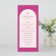 Modern wedding program featuring your monogram along with your order of ceremony and wedding party inside of a blush pink coloured arch over a vibrant magenta background. This simple yet elegant design with bold and bright colours is great for a summer wedding.
