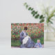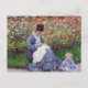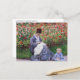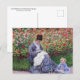 A fine art postcard with the painting, Camille Monet and a Child in The Artist's Garden at Argenteuil (1875) by Claude Monet (1840-1926). A portrait of Monet's wife and child against a backdrop of beautiful red and pink flowers in his own garden in France.