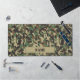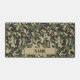 Camo camouflage pattern in beige, medium and dark brown and green. Personalise with your name or initials in matching stencil font.