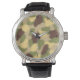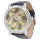Classic camouflage colours green, khaki and brown under obscure glass.