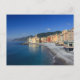 beach and promenade in Camogli, famous small town in Mediterranean sea, Italy