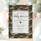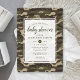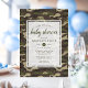 Gear up for a unique baby shower celebration with this bold camouflage-themed invitation, perfect for parents who love the outdoors or military-inspired decor. Featuring a classic green and brown camo pattern, this design sets a rugged and adventurous tone for a baby boy’s shower. The rustic camo background adds a fun, distinctive style, ideal for hosting a memorable gathering with friends and family. Perfect for nature enthusiasts or anyone wanting an outdoorsy or adventure-themed baby shower that stands out.