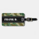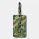 Personalised Camouflage pattern design travel luggage tag. Hunter green design with white monogrammed name intitial letters. Cool gift idea for soldier or hunter. Camo colour accessory for bags and suitcases.