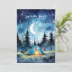 Modern Watercolor Joy to the World! Camping Adventure Moon Pine Tree Starry Night Theme Holiday Christmas Card. Personalise with your message, name, year, and signature. Perfect for couples and families who love to explore the great outdoors and do adventures.