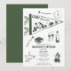 A cute hand drawn design featuring bachelorette camping theme illustrations. This green and white camp bach weekend design is ideal for glamping camping bachelorette weekends, camping girls trip bachelorette parties in mountain, forest or lake destinations.