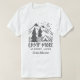 Create a unique custom t-shirt for your next family camping trip or outdoor excursion. Tee features the quote "camp more, worry less" in rustic grey lettering beneath a hand drawn illustration of a camping tent set in a pine forest with a crescent moon rising over snow-capped mountain peaks. The perfect way to commemorate a special trip, or for anyone who loves camping, you can customise this camping shirt with your choice of text beneath the design. Add your camping destination, the year, or a family name.