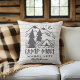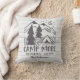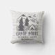 Up your camping game or add a custom touch to your RV or camper with this cute personalised throw pillow with a white wood-look background. Rustic design features the quote "camp more, worry less" in distressed grey lettering beneath a hand drawn illustration of a camping tent set in a pine forest with a crescent moon rising over snow-capped mountain peaks. The perfect way to commemorate a special trip, or for anyone who loves camping, you can customise this throw pillow with your choice of text beneath the design. Add your camping destination, the year, or a family name for a special touch.