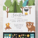 Camp Out Party With Game on Back - iSpy game how many can you see? A great camping party invitation for a birthday or any fun occasion - featuring a tent, trees, fox and bear and camp site with camp fire with a fun math game.