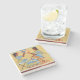 The coasters are gorgeous, a quality feel and heavy weight. They look like a precious archeological find. A rustic stone juxtaposed with a modern floral black and white print. I like the way the print goes slightly imperfect on the cut stone edges giving them a kind-of natural beauty.