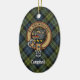 Campbell crest badge surrounded by a strap and buckle over tartan background. Custom text on both sides.