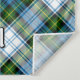 Campbell crest badge surrounded by a strap and buckle over dress tartan background. Custom text.