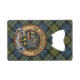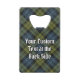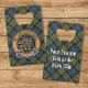 Campbell crest badge surrounded by a strap and buckle over tartan background. Custom text on both sides.