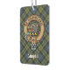 Campbell crest badge surrounded by a strap and buckle over tartan background. Custom text on both sides.