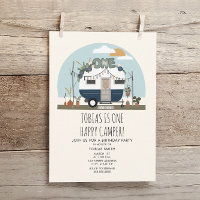 One Happy Camper Camping Boy 1st Birthday Invitation