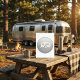 A camper trailer icon on a silver background. This design looks really effective on these Invitation