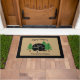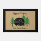 This camper themed doormat is ready for you to personalise with your own name and greeting. Created with a cute mini trailer image among trees in shades of black and tan with black text and background contrasts. Great gift for cottage or camper families.