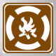 International style road and highway sign advising of recreational facilities, specifically: campgrounds where campfires are permitted.