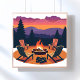 Campfire Sunset | Nature Camping Painting Poster Art Print