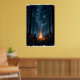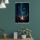 Campfire under a starry night sky in the serene poster