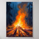 Campfire Watercolor Forest Painting Art Poster