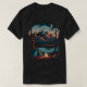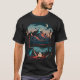 A cool retro style design for camping lovers featuring a mountain landscape by a lake at night with a tent.