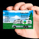 Camping business cards with image of a recreational vehicle and campgrounds, along with a great text layout you can customise.