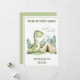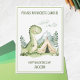 Camping Dinosaur Kids Happy Valentine's Day Holiday Card features a cute green watercolor dinosaur with a cheerful smile, standing in a scenic valley beside a camping tent. Designed in an adorable kids’ cartoon style, the card has a simple white background, a matching green border, and darker green "You are my favourite camper!" text that delivers a sweet Valentine’s Day message. Personalise the card with your recipient’s name for an extra-special touch.