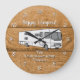 This round clock features a generic Class A RV with a rustic wood background. You can change the family name to your own name so you can always know that this is your "happy camper" home.
