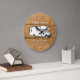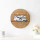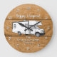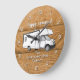 This round clock features a generic Class C RV with a rustic wood background. You can change the family name to your own name so you can always know that this is your "happy camper" home.