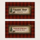 This fun and rustic looking camping theme wedding favour thank you card has a red and black buffalo plaid pattern background with a racoon and evergreen tree in a frame with rustic "Thank You" text and a straw bow that matches the wedding invitation shown below. Perfect for the outdoorsy couple having a camping style, "glamping" theme or an outdoors or nature theme wedding. ****PLEASE NOTE that everything will print as it appears on your monitor, so if you have typos, alignment, or sizing issues, please contact me for help BEFORE you order. Matching items are shown below. If you need any other matching items, please email niteowlstudio@gmail.com.