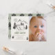 This cute camping theme boy's 1st/first birthday photo invitation features hand-drawn illustrations of the tent, mountains, trees and sun. The reverse side features a khaki green background with tree patterns. Personalise it for your needs. You can find matching products at my store.