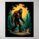 Camping Hiking Bigfoot Walking With Boston Terrier Poster