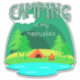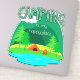 A cute sticker which says "Camping is my happy place" along with a cute image of camping by a lake with mountains in the background and trees. Perfect for a laptop, phone case, helmet, skateboard or anywhere else you can think to stick it.
