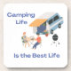 Camping Life is the Best Life with a couple sitting around their camper on a beverage coaster.