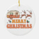 Camping Merry Christmas Reindeer Typography Ceramic Ornament