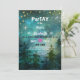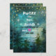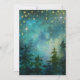 Night time wooded forest with gold glitter-effect stars and galaxy with tent camping theme party invitation card design.