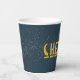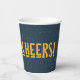 "Cheers" cup with midnight blue starry night sky design. Coordinates with our camping party collection.