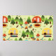 Camping scene - caravan, camping chairs, fire plac poster