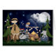 Too cute, these blank notes are fun to tuck into your child's bags when she goes off to summer camp so she can write home. A little girl in shorts and a hat is roasting marshmallows with a cute racoon dressed like a bandit and little squirrel and a cute opossum in overalls. This is an exclusive design by the SalonOfArt.com.