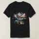 A cool design for camping lovers featuring a mountain landscape by a lake at night with a tent and campfire.