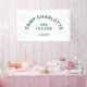 Camp theme bachelorette, personalised forest green crest banner. Personalise with bride's name, the year of the camp theme bachelorette party/trip and location. The perfect backdrop / banner for a camp theme bachelorette party. Designed to match our Camp Bachelorette Green & Pink Collection.
