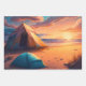 Tents, Campfires, hiking trails and other camping themed graphics birthday gift wrap.