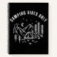 This design features a tent, mountains, trees, a starlit sky with a half moon and the quote, "Camping vibes only."