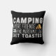 A funny typography design featuring a tent and a camper, that reads: "Camping: where friends and marshmallows get toasted".