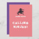 Invitations for ninja warrior-themed campus parties, fraternity parties, and sorority parties, young scholars' sorority ,customisable with personalised text and colours.